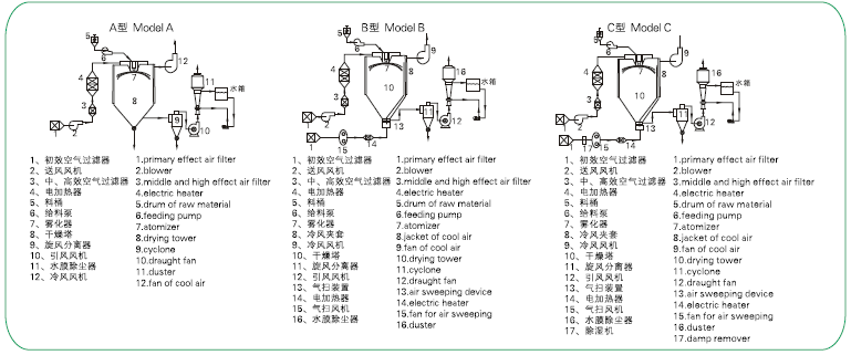 Detailed The machine adopts full seal form. All parts are made of stainless steel.It is equipped with three grades of filter.The filtered air is one hundred thousand grades.The cooling device of wall is installed at the cylinder body.It makes the wall temperature less than 80℃。Air sweeping device is installed inside the drying tower. The product will not be burnt or deteriorated even stays on the wall. The collection rate of powder is raised greatly.Moreover will not cause medicine mixed or wall stick.